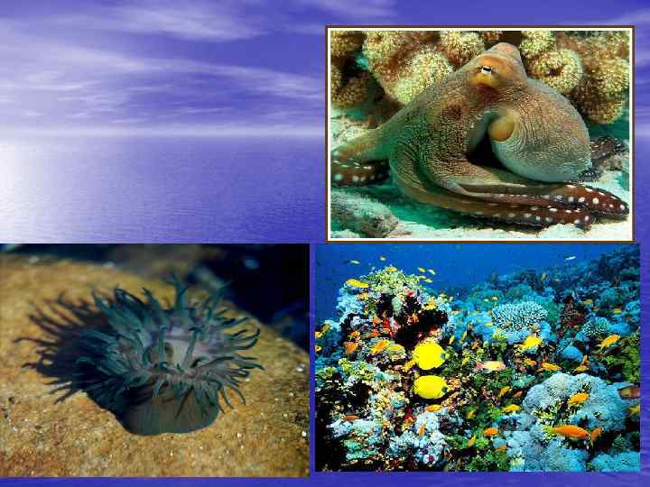 Бентос – от греческого слова «глубина» . Это животные и растения, живущие на дне водоема: моллюски, кораллы, губки, крабы, придонные рыбы, черви. Для жизни им необходима опора, постоянная или временная. Роль опоры выполняет твердый грунт. Крупные водоросли растут до глубин в 100150 метров.