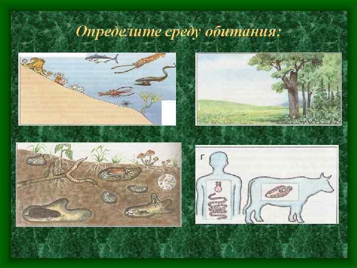 УСЛОВИЯ СРЕДЫ ОБИТАНИЯ: СВЕТА - мало, КИСЛОРОДА - не хватает, ВОДЫ - достаточно, ТЕМПЕРАТУРА - мало изменяется, ПЛОТНОСТЬ - выше плотности воздуха