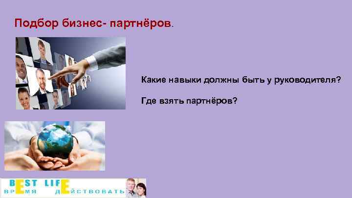 Подбор бизнес- партнёров. Какие навыки должны быть у руководителя? Где взять партнёров?