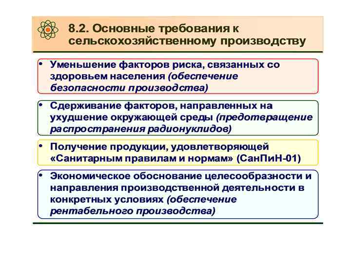 Тема: Ведение с. х. производства в условиях РЗ • Вопросы: • 1. О целесообразности хозяйственной деятельности на загрязненных территориях. • 2. Особенности ведения с. х. в зависимости от уровня РЗ. • 3. Нормирование поступления РН в организм животных. •