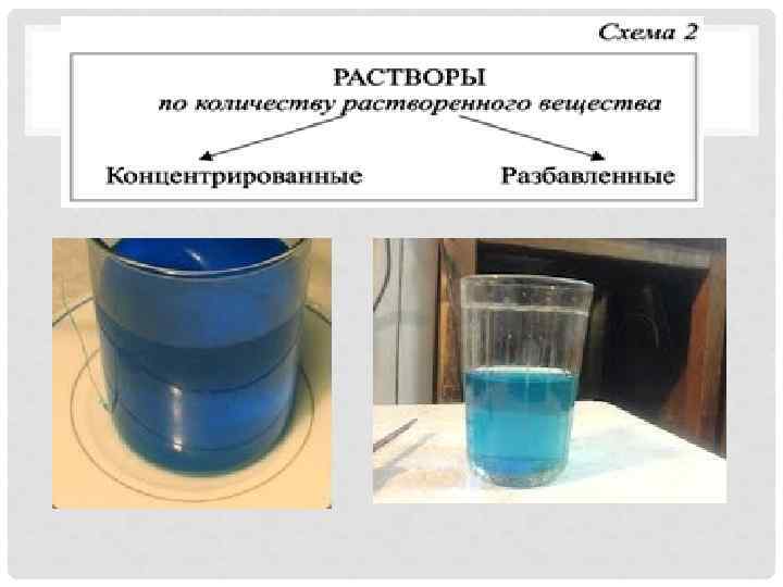 ОПРЕДЕЛЕНИЯ ПО ТЕМЕ «РАСТВОРЫ» • Раствор – однородная система, состоящая из молекул растворителя и растворённого вещества, между которыми происходят физические и химические взаимодействия. • Насыщенный раствор – это раствор, в котором данное вещество при данной температуре больше не растворяется. • Ненасыщенный раствор - это раствор, в котором при данной температуре вещество ещё может растворяться. • Суспензией называют взвесь, в которой мелкие частицы твёрдого вещества равномерно распределены между молекулами воды. • Эмульсией называют взвесь, в которой мелкие капельки какой-либо жидкости распределены между молекулами другой жидкости. • Разбавленные растворы - растворы с небольшим содержанием растворенного вещества. • Концентрированные растворы - растворы с большим содержанием растворенного вещества.