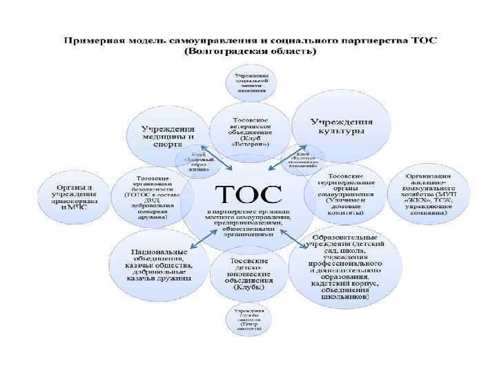 Система ТОС общие собрания (сходы), в том числе земские, конференции и иные формы осуществления непосредственной демократии гражданами органы ТОС - советы, комитеты или иные органы общественного самоуправления микрорайонов, жилых комплексов, поселков, деревень, кварталов, улиц, домов и других территорий, входящих в состав муниципального образования уполномоченные выборные лица ТОС