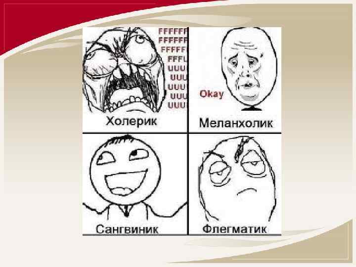 • В данном комиксе продемонстрирован о поведение на обстоятельства сангвиника и холерика.
