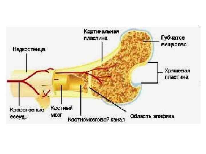Рост трубчатой кости в длину происходит за счет метаэпифизарной хрящевой пластинки Рост трубчатой кости в ширину осуществляется за счет периоста (надкостницы)