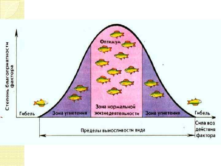 Любой организм выбирает для жизнедеятельности условия, находящиеся между минимальным и максимальным значениями интенсивности определяющего жизнь фактора. Этот предел условий называют пределом толерантности (пластичностью вида). Свойства организмов min max Инт. F
