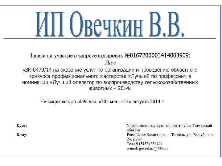 Последний выигранный мною тендер • Старт цены – 500 000 • ТЗ – арендовать зал для концерта и предоставить ведущего. • Аренда зала – 180 000, ведущий – я)