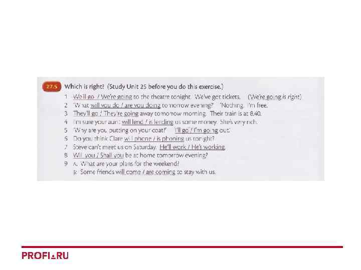 Future cases Will do it tomorrow ‘m going to do it tomorrow ‘m doing it tomorrow - - - programmes The train leaves Timetable The course begins present simple tense