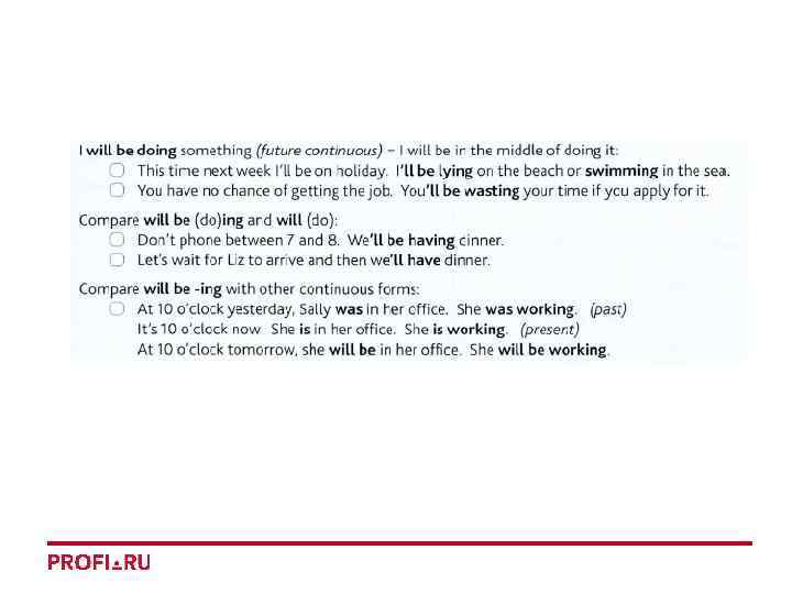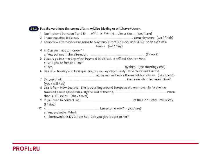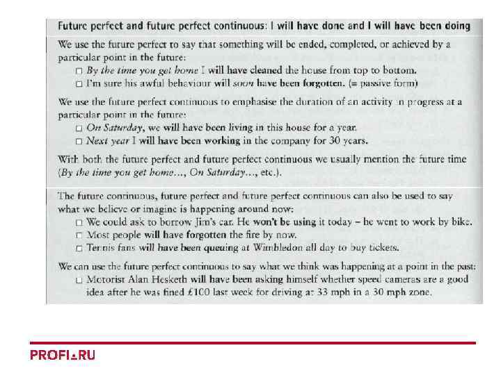 Future perfect continuous tense NOW t + will have been doing By 3 pm tomorrow will not (won’t) have been doing ? Will you have been doing…?