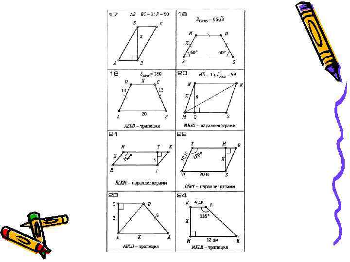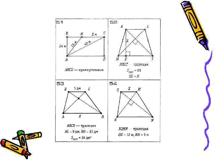 Задача из «Арифметики» Магницкого В АВ²= АС²+ ВС², АС² = АВ²-ВС² АС²=125²-117² 117 125 стоп АС²=(125 -117)(125 +117)= =242 8 = 121 2 4 2 С АС =11 2 2= 44(стопы) ? А