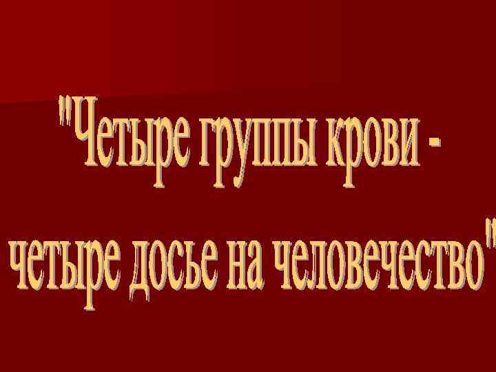 Теоретически обосновать принадлежность человека к четырем группам крови Изучить версии мест зарождения групп крови на Земле; • • Проследить пути передвижения людей с различными группами крови по России; • Выявить соответствие группы крови человека его психологическому портрету; • Рассмотреть взаимосвязь между группами крови и различными заболеваниями.