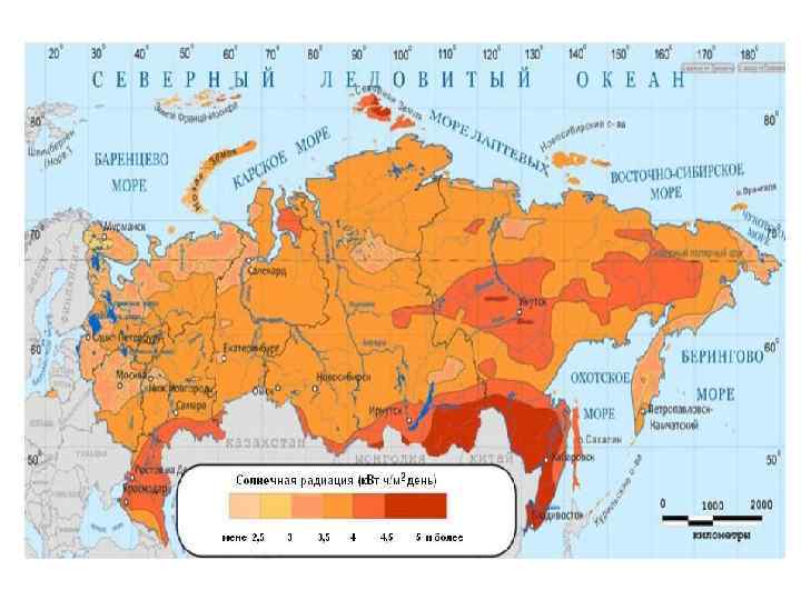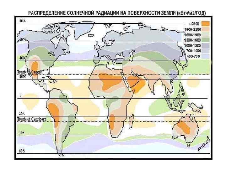 Площадь поверхности Земли, облучаемой Солнцем, составляет около 500 · 106 км 2. Поток солнечной радиации, достигающей Земли, по разным оценкам составляет (7, 5— 10) · 107 к. Вт · ч/год, или (0, 85— 1, 2) · 1014 к. Вт