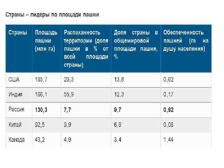 Пашня • 78 % земной поверхности испытывают серьёзные природные ограничения для развития земледелия • 13 % площадей отличаются низкой продуктивностью • 6 % средней • 3 % высокой. • В настоящее время распахано около 11 % всей суши, ещё 24 % используется под пастбища.