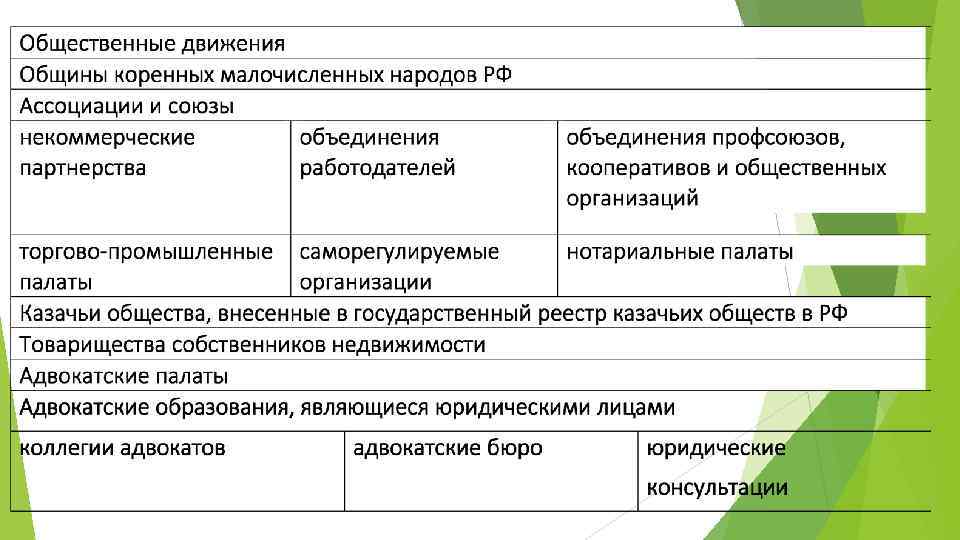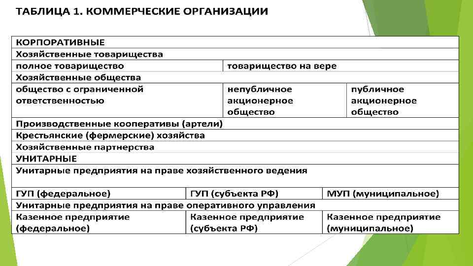 ТАБЛИЦА 2. НЕКОММЕРЧЕСКИЕ ОРГАНИЗАЦИИ КОРПОРАТИВНЫЕ Потребительские кооперативы потребительские общества садоводческие, жилищные, жилищно огороднические и дачные потребительские -строительные и кооперативы гаражные кооперативы общества взаимного страхования кредитные кооперативы сельскохозяйственные потребительские кооперативы Общественные организации политические партии созданные в качестве юридических лиц профсоюзы (профсоюзные организации) органы общественн ой самодеятель ности территориа льные общественн ые самоуправл ения