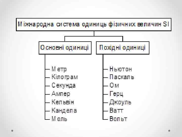 основні ФІЗИЧНІ ВЕЛИЧИНИ похідні Основні величини не залежні одна від одної, але вони можуть бути основою для встановлення зв'язків з іншими фізичними величинами, що називають похідними від них. Сукупність основних і похідних одиниць система одиниць фізичних величин