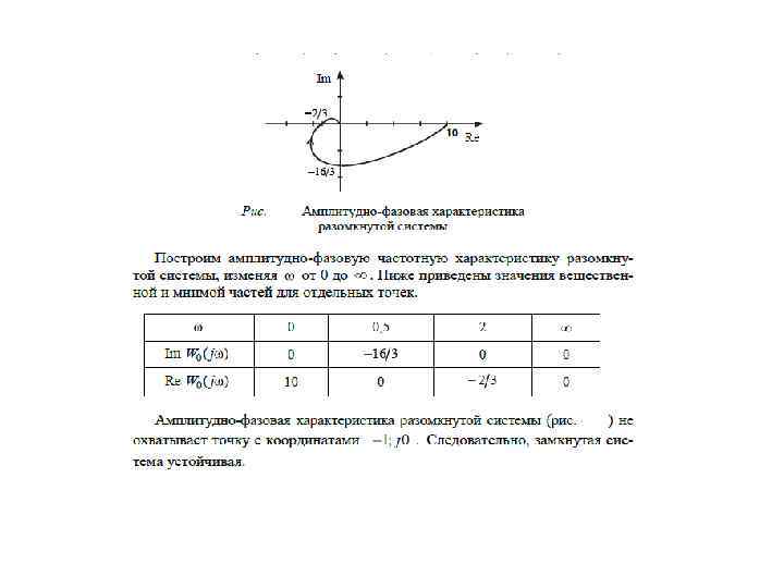 Формулировка критерия Найквиста: для устойчивости замкнутой системы необходимо и достаточно, чтобы амплитудно-фазовая характеристика устойчивой разомкнутой системы при изменении от 0 до ∞ не охватывала точку с координатами -1; j 0. Примеры расположения частотных характеристик, соответствующих устойчивой и неустойчивой замкнутым системам, приведены на рис. Разомкнутая система может быть неустойчива, однако это не означает, что неустойчивой будет и замкнутая система. В этой ситуации следует использовать видоизмененную формулировку критерия Найквиста: замкнутая система будет устойчива тогда и только тогда, когда амплитудно-фазовая характеристика неустойчивой разомкнутой системы при изменении от 0 до ∞ охватывает точку с координатами -1; j 0 в положительном направлении r/2 раз, где r– число корней характеристического уравнения разомкнутой системы с положительной вещественной частью.