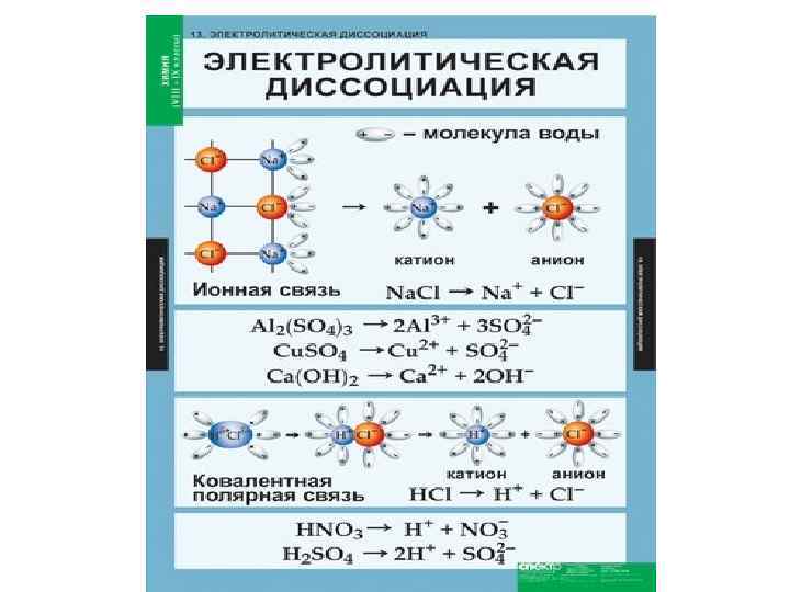 Упрощённо процесс диссоциации изображают с помощью уравнений диссоциации: Na. Cl = Na+ + Cl. HCl = H