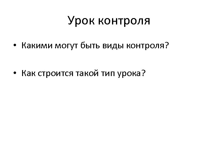 Урок контроля • Какими могут быть виды контроля? • Как строится такой тип урока?