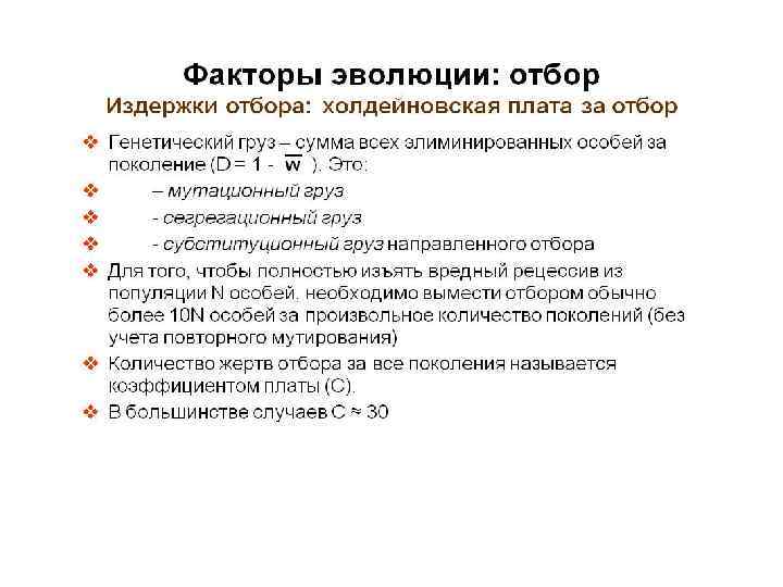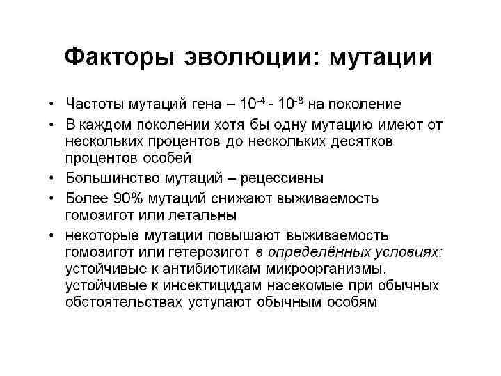 Элементарные эволюционные факторы 1. 2. 3. 4. 5. 6. Мутационный процесс Комбинативная изменчивость Популяционные волны Генетический дрейф Изоляция Естественный отбор