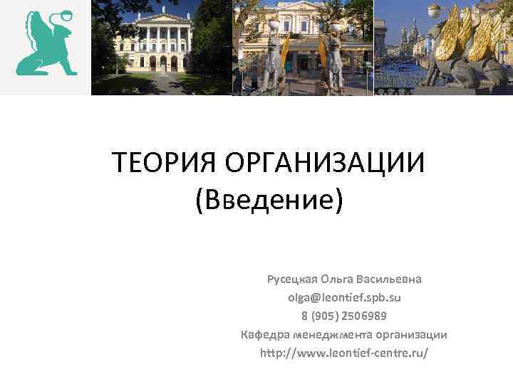ТЕОРИЯ ОРГАНИЗАЦИИ (Введение) Русецкая Ольга Васильевна olga@leontief. spb. su 8 (905) 2506989 Кафедра менеджмента организации http: //www. leontief-centre. ru/