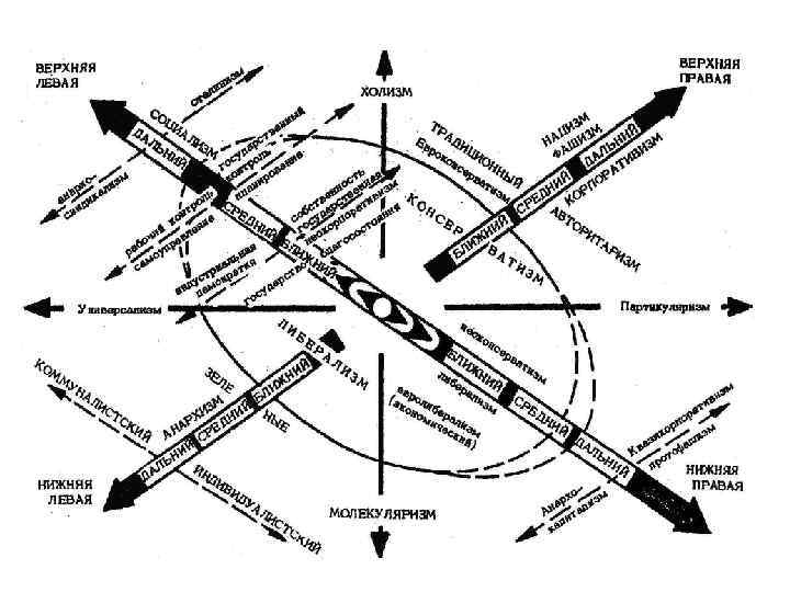 Политический линейный спектр Леворадикалы Лев. центр Центристы Прав. центр Праворадикалы |------------------|------------------|---------| Коммунизм Социализм Либерализм Консерватизм Фашизм Анархизм Экологизм Демократизм Христианская Национализм