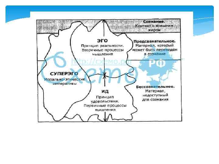 В начале 20 -х гг. Фрейд пересмотрел свою концептуальную модель психической жизни и ввел в анатомию личности три основные структуры: - Ид - Эго - Суперэго