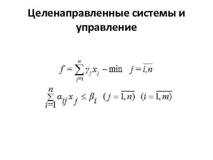 Применяется: а) в задачах планирования производства; б) задачах о рационе и т. д. ; в) задачах оптимальной загрузки оборудования. Постановка цели перед системой (часто говорят глобальной цели) влечет за собой необходимость а) формулировки локальных целей, стоящих перед элементами системы и группами элементов; б) целенаправленного вмешательства в функционирование (строение, создание) системы.