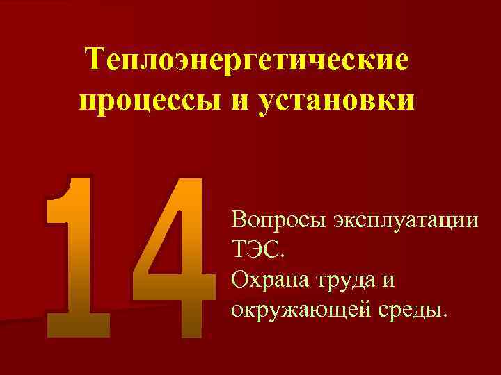 Теплоэнергетические процессы и установки Вопросы эксплуатации ТЭС. Охрана труда и окружающей среды.