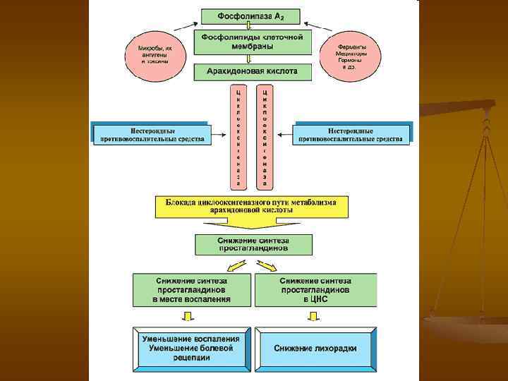 Метаболиты арахидоновой кислоты и их действие: n n n n Простагландины D 2, E 2, F 2 альфа, тромбоксан А 2, лейкотриены С 4, D 4, E 4: - Сокращение гладких мышц, бронхоспазм Простагландины D 2, и Е 2, лейкотриены С 4, D 4, E 4: - Расширение сосудов и повышение их проницаемости Простагландины F 2 альфа и I 2, тромбоксан А 2: - Сужение сосудов легких Лейкотриены С 4, D 4, E 4: - Повышение секреции слизи Лейкотриен Е 4: - Повышение реактивности бронхов Тромбоксан А 2, лейкотриен В 4: - Хемотаксис и адгезия лейкоцитов Простагландины D 2, E 2, I 2, лейкотриен В 4: - Подавление секреторной и пролиферативной активности лимфоцитов Тромбоксан А 2: - Повышение агрегации и активация тромбоцитов