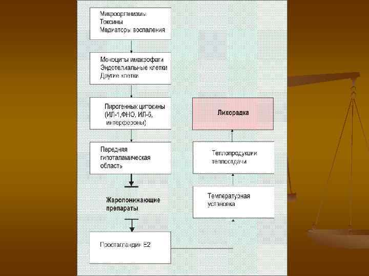 Физиологический смысл лихорадки n n при высоких температурах некоторые виды бактерий перестают размножаться и теряют вирулентность Лихорадка стимулирует фагоцитарную и бактерицидную активность нейтрофилов и цитотоксическое действие лимфоцитов. n n При повышении температуры тела на 1*С потребление кислорода увеличивается на 13%, повышается потребность в жидкости и расход энергии ИЛ-1 и ФНО альфа ускоряют катаболизм в мышцах. Мышление при лихорадке замедлено, могут развиваться сопор и спутанность сознания , а у детей - эпилептические припадки. Однократный подъем температуры тела выше 37, 8*С в I триместре беременности удваивает риск пороков развития нервной трубки у плода.