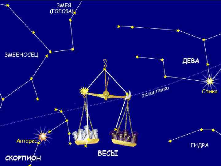 ІСТОРІЯ Як самостійне сузір'я в античній традиції оформилося досить пізно, близько II століття до н. е. , хоча окремі згадування зустрічаються і раніше, наприклад, Арат Солійський пише про сузір'я в поемі «Явища і передбачення» (III ст. до н. е. ). У період оформлення сузір'я як самостійного для нього використовувалося назва «Клешні» : малися на увазі клешні сузір'я Скорпіон. Зокрема, на «Альмагесті» Птолемея сузір'я описано як окреме сузір'я «Клешні» . При цьому для відповідного знака зодіаку застосовувалося назву «Терези» , що ймовірно, мало Малоазійське походження. Ця назва стає загальновживаним щодо сузір'я приблизно в I столітті до н. е. Терези - єдине сузір'я зодіаку, що представляє неживий предмет. Дослідники вважають, що це пов'язано саме з пізнім формуванням сузір'я.