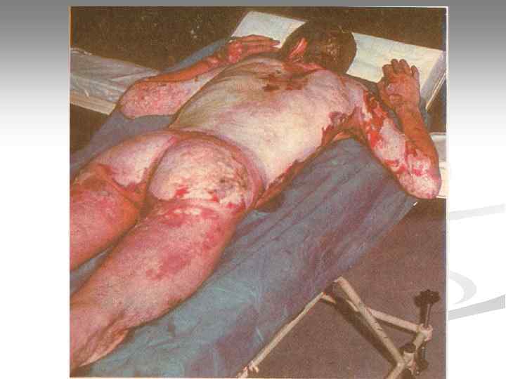 ОЖОГОВАЯ БОЛЕЗНЬ Лечение ожогового шока n Введение жидкостей Лечение токсемии и септикотоксемии n Детоксикация (гемодез, кристаллоиды) n Белковые препараты (аминокислотные смеси – альвезин) n Антибиотики (в зависимости от чувствительности микрофлоры ожоговой раны)