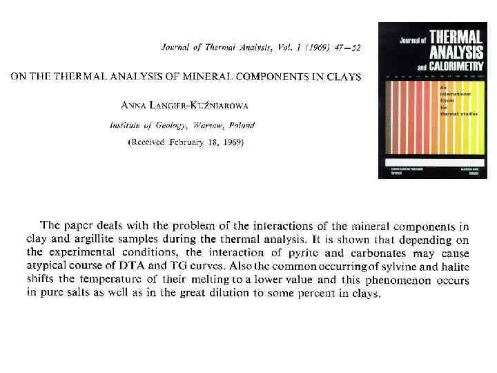 У большинства веществ при нагревании происходит несколько превращений - только эндотермические реакции - только экзотермические реакции - и эндо- и экзотермические реакции большинство веществ имеет индивидуальную кривую ДТА МОНТМОРИЛЛОНИТ (Na, K)(Аl, Fe)[(Si, Al)4 O 10](OH)2*n. H 2 O