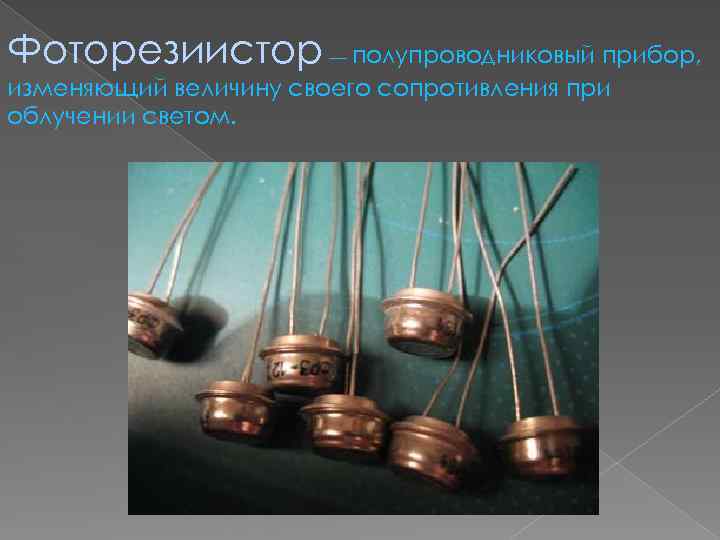 Фоторезиистор — полупроводниковый прибор, изменяющий величину своего сопротивления при облучении светом.