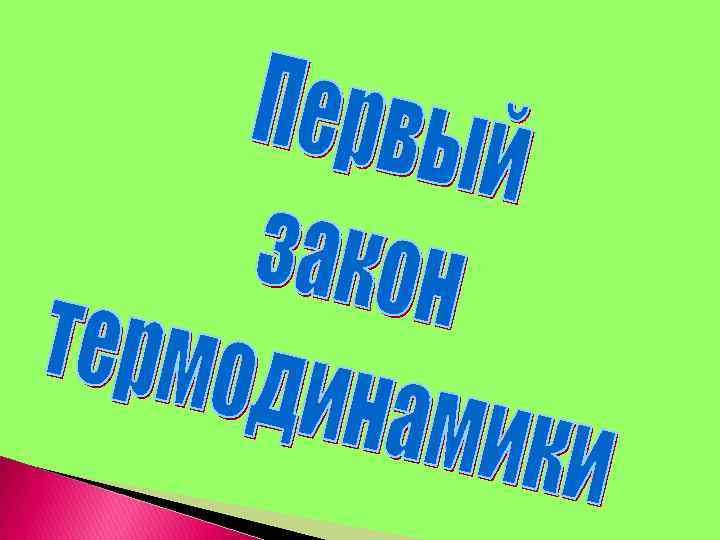 Первый закон термодинамики Количество теплоты, полученное системой, идет на изменение ее внутренней энергии и совершение работы над внешними телами Q = ΔU + A