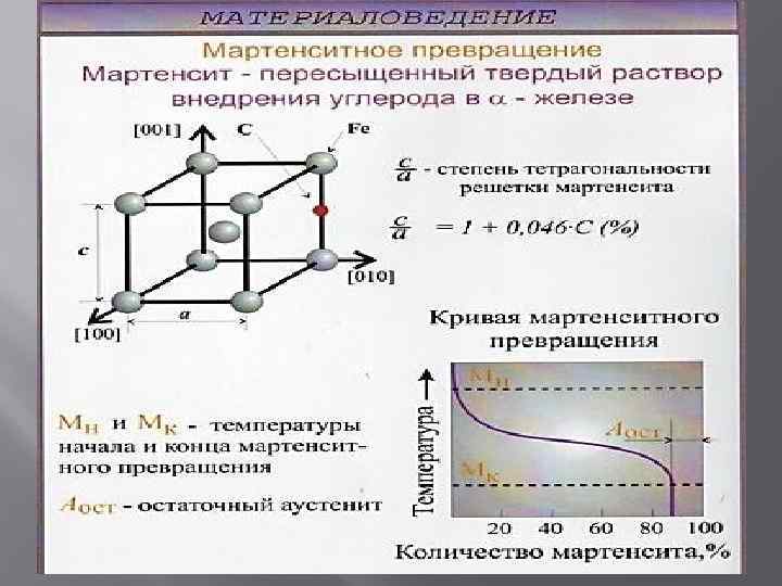 Третье основное превращение в сталях ( превращение аустенита в мартенсит)
