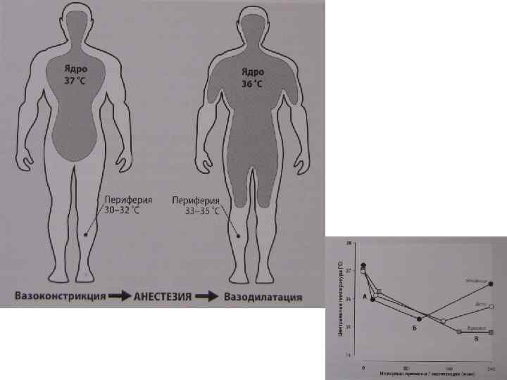 • симпатическая блокада и ингаляционные анестетики блокируют недрожательный термогенез • скорость основного обмена во время анестезии уменьшается на 2040% • регионарная анестезия блокирует вазоконстрикцию
