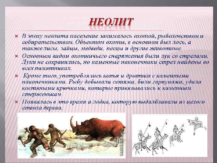 Неолит(5 -3 век до н. э. ) - (от Нео. . . и греч. líhos — камень) новый каменный век, эпоха позднейшего каменного века. Неолити ческая револю ция — переход человеческих общин от примитивной экономики охотников и собирателей к сельскому хозяйству, основанному на земледелии и животноводстве.