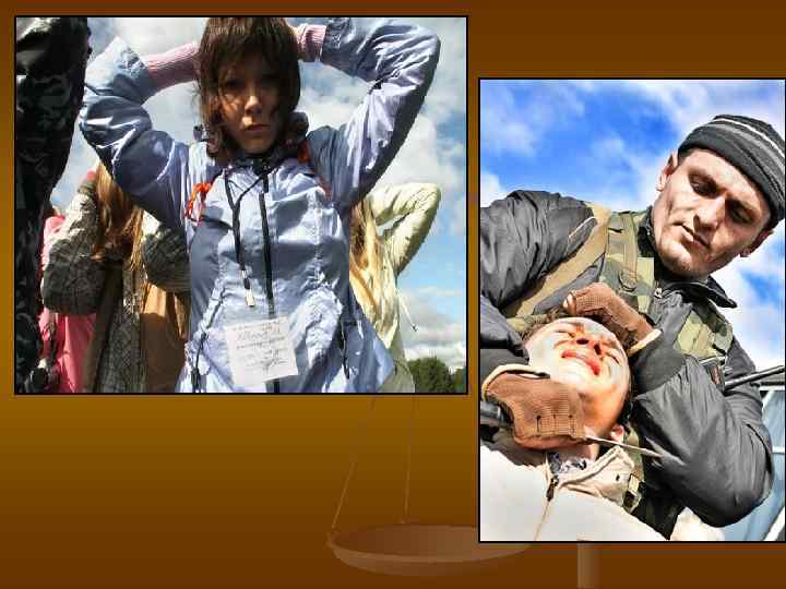 Терроризм – это самое злобное, самое гнусное преступление на земле n n Слово «террор» переводится на русский язык как «ужас» , «страх» . Действия, когда бандиты взрывают, убивают, захватывают в заложники или запугивают мирных граждан, для того чтобы достичь преступных целей и нанести вред обществу и государству, называются терроризмом.