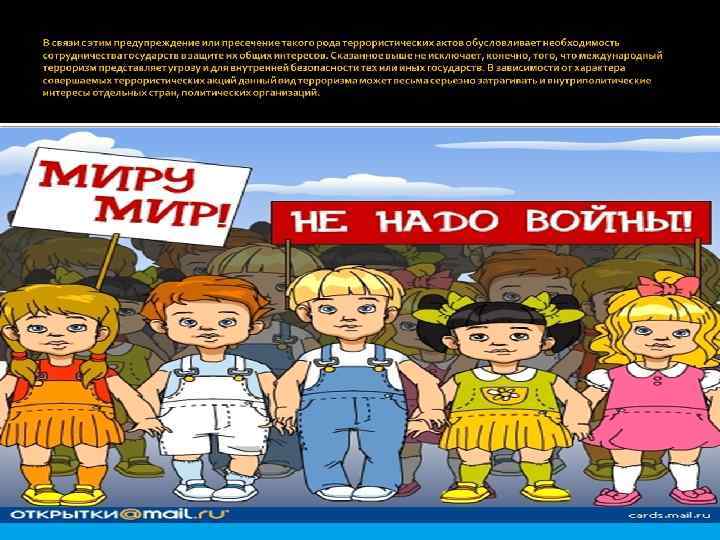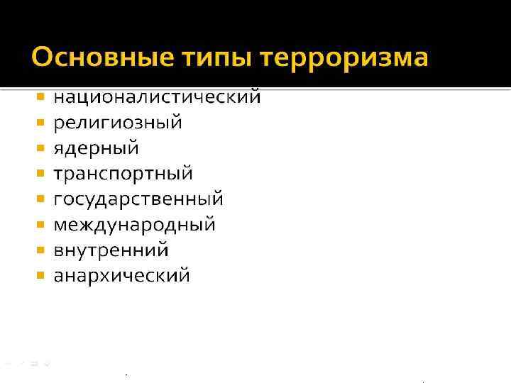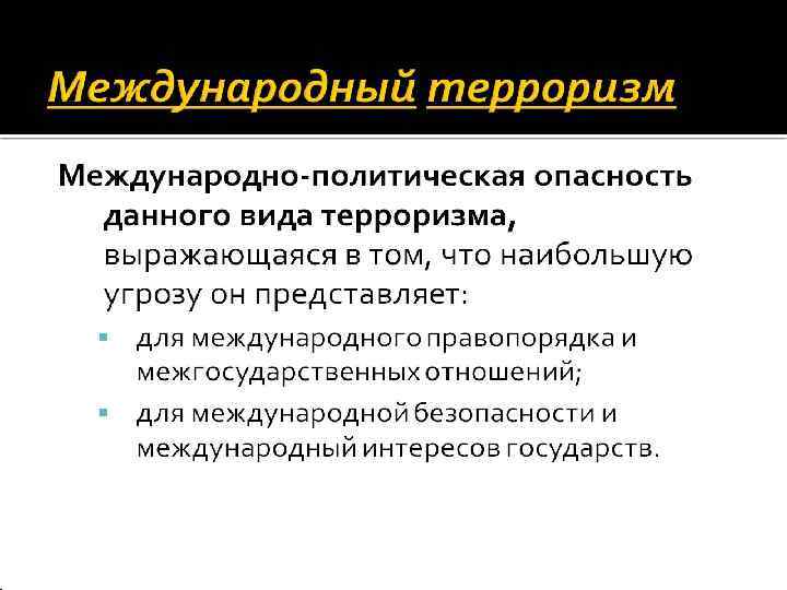 Терроризм – крайняя форма насилия или угроза насилия, совершаемая для устрашения противников с целью достижения конкретных результатов.