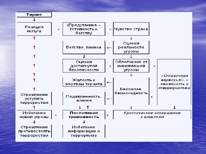 Статистика по терроризму в мире • С 2000 по 2008 год общее количество совершенных терактов составило 14 934. • • • • • • • Средний показатель совершенных терактов на страну – 133, 3. - Ирак – 4 606 случаев совершенных терактов - западный берег р. Иордан – 1 927 - Колумбия – 1 135 - Испания - 732 - Таиланд - 691 - Афганистан – 591 - Индия - 509 - Пакистан - 504 - Турция - 477 - Израиль - 463 - Франция - 446 - Непал – 379 - Россия – 284 - Греция – 230 - Филиппины – 213 - Индонезия – 197 - Шри-Ланка – 131 - Италия – 135 - Бангладеш – 111 - США – 98 - Сербия и Черногория – 90 - Венесуэла – 80 - Ливан – 69 - Алжир – 63 - Македония – 52 - Саудовская Аравия – 46