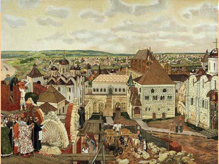 Земельные отношения. Право собственности на землю у государства в лице князя как представителя всего народа. Феодальные владения. Вотчины – наследственные земельные держания. Монастырские земли. Земля как совместная собственность общины, делится между всеми семьями, входившими в общину. А. М. Васнецов. Русь древняя