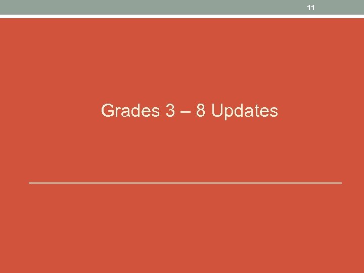 10 Time Schedule and Test Sequence • Under no circumstances should a test be started unless there is enough time to complete it. • Students may only be given breaks between sections or sessions. • Sections must be given in sequential order on consecutive school days