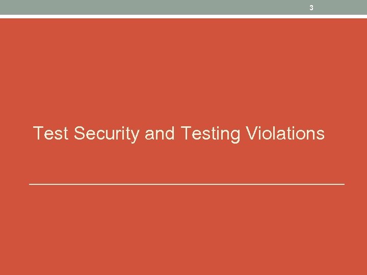 2 Agenda • Test Security and Testing Violations • Grades 3 – 8 Updates • Grade 10 & U. S. History Updates • Testing Accommodations Update • Test Administrator Training • Test Administrator Requirements • Test Administrator Responsibilities for All Assessments • Additional Test Administrator Responsibilities for Online Testing • SDE Contact Information