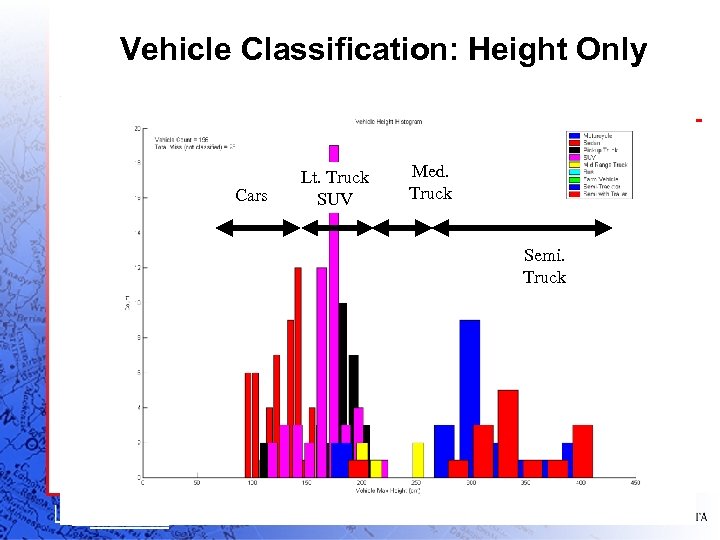 Vehicle Classification: Height Only Cars Lt. Truck SUV Med. Truck Semi. Truck