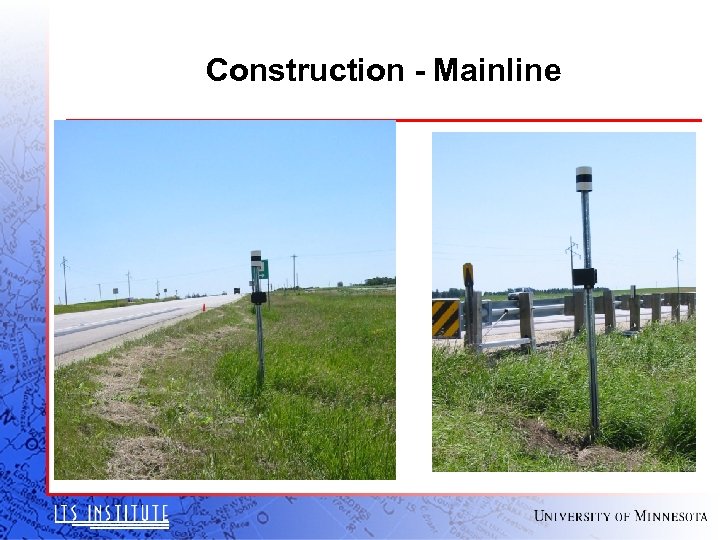 Test Intersection Status u Mainline surveillance Construction Complete v All sensors operational v Series of Validation Experiments Complete v