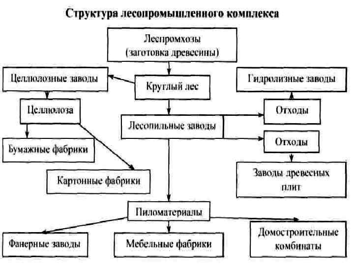 • Лесопромышленные комплексы – это объединения близко расположенных предприятий промышленности для совместного использования сырья, энергии, транспорта и полной переработки многочисленных отходов.