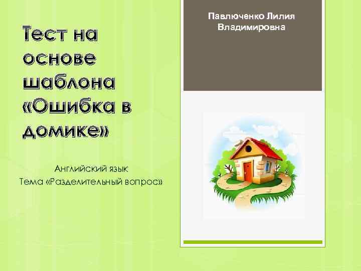 Тест на основе шаблона «Ошибка в домике» Английский язык Тема «Разделительный вопрос» Павлюченко Лилия Владимировна