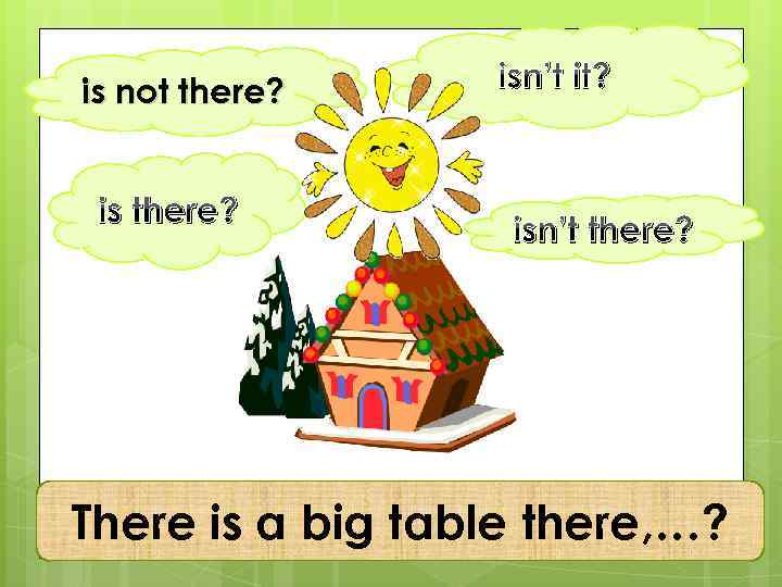 is not there? is there? isn’t it? isn’t there? There is a big table there, …?