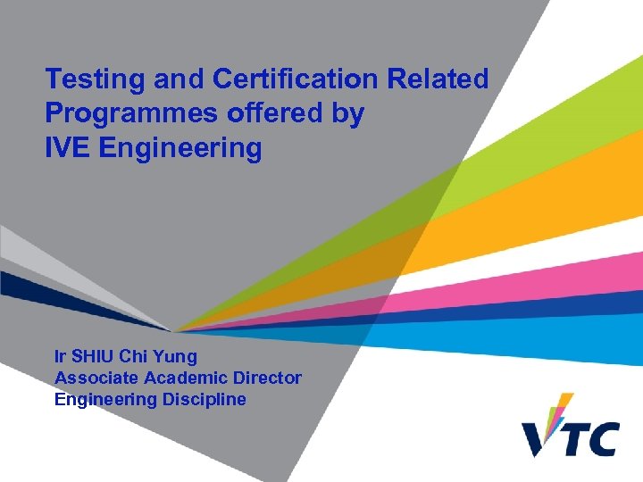 Testing and Certification Related Programmes offered by IVE Engineering Ir SHIU Chi Yung Associate Academic Director Engineering Discipline