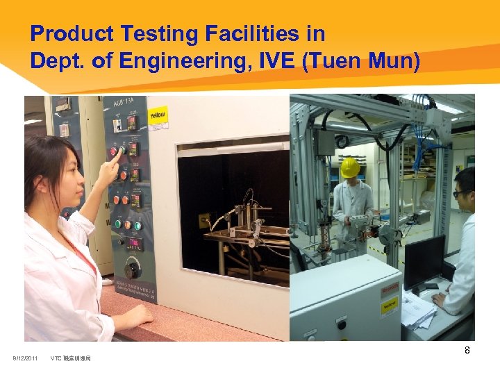Product Testing Facilities in Dept. of Engineering, IVE (Tuen Mun) 8/12/2011 VTC 職業訓練局 8